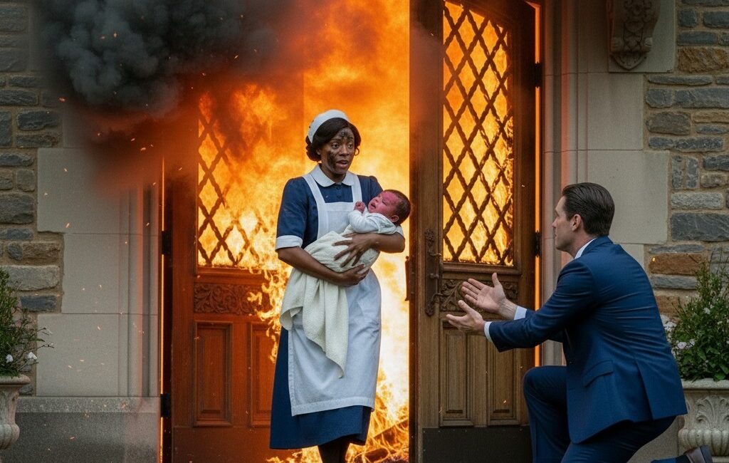 The scream shattered the tranquil evening at Richard Collins’s sprawling manor. Within seconds, thick smoke flooded the corridors, curling around polished banisters, creeping under closed doors. The orange glow of flames spread greedily across the gleaming kitchen floor, licking at cabinets, devouring drapes.