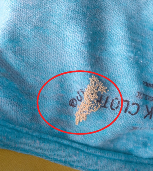 Female insects often lay eggs in concealed places—seams, folds, crevices, collars, under stitching, or on undersides of fabric. Random residue is less likely to cluster in these specific zones. - Absence of Related Debris