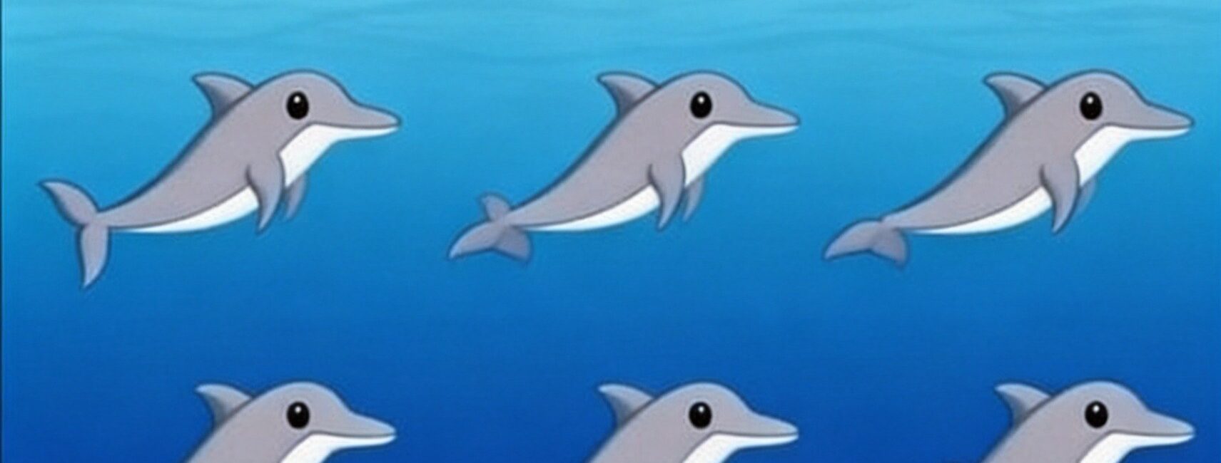 At first glance, the image feels visually balanced. Three rows of dolphins. Even spacing. Clear outlines. Strong contrast between grey bodies and blue water. The composition itself encourages closure. Your brain recognizes order and symmetry and quickly concludes the task is complete.