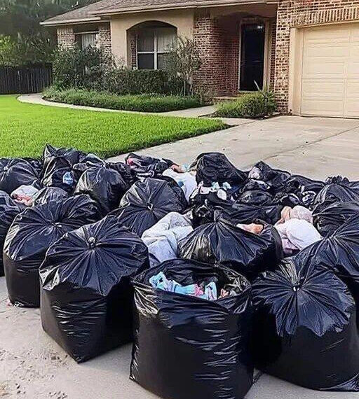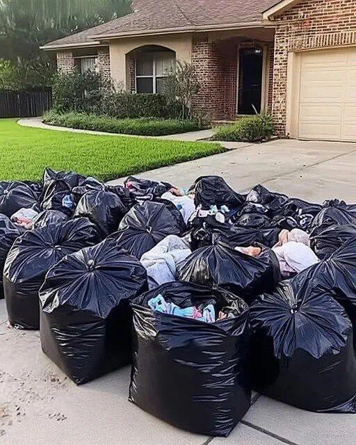 Trash bags lined the curb. Toys lay exposed to wind. Clothing spilled onto grass. Ava’s pink blanket fluttered in the air.